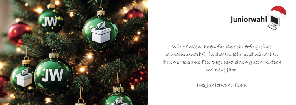 Zum Jahresausklang möchten wir uns ganz herzlich bei allen Projektpartnern, Unterstützer/innen, Schüler/innen und Lehrkräften für die Zusammenarbeit und Unterstützung bedanken! Gerade die Herausforderungen mit der vorgezogenen Bundestagswahl im Februar 2025 konnten wir gemeinsam bewältigen und die Juniorwahl zur größten bundesweiten Umsetzung seit Bestehen mit über 7.200 Schulen und 2,1 Millionen Schülerinnen und Schülern verhelfen. Wir […]